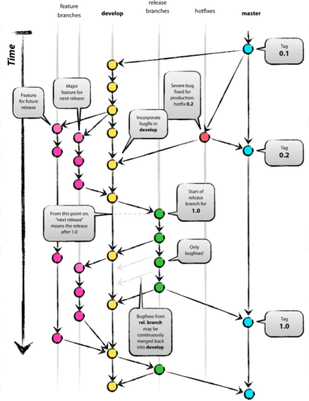 핵심은 브랜치마다 정해진 역할과 수명(Life Cycle)이 있다는 것...