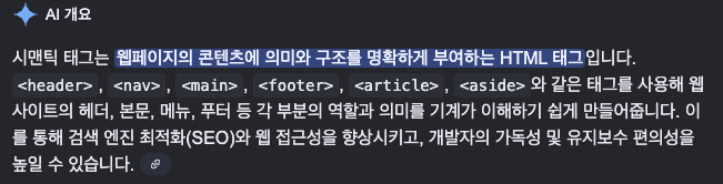 그래서 시맨틱 태그가 뭔데....? 또 구글에 한번 검색해보겠습니다.